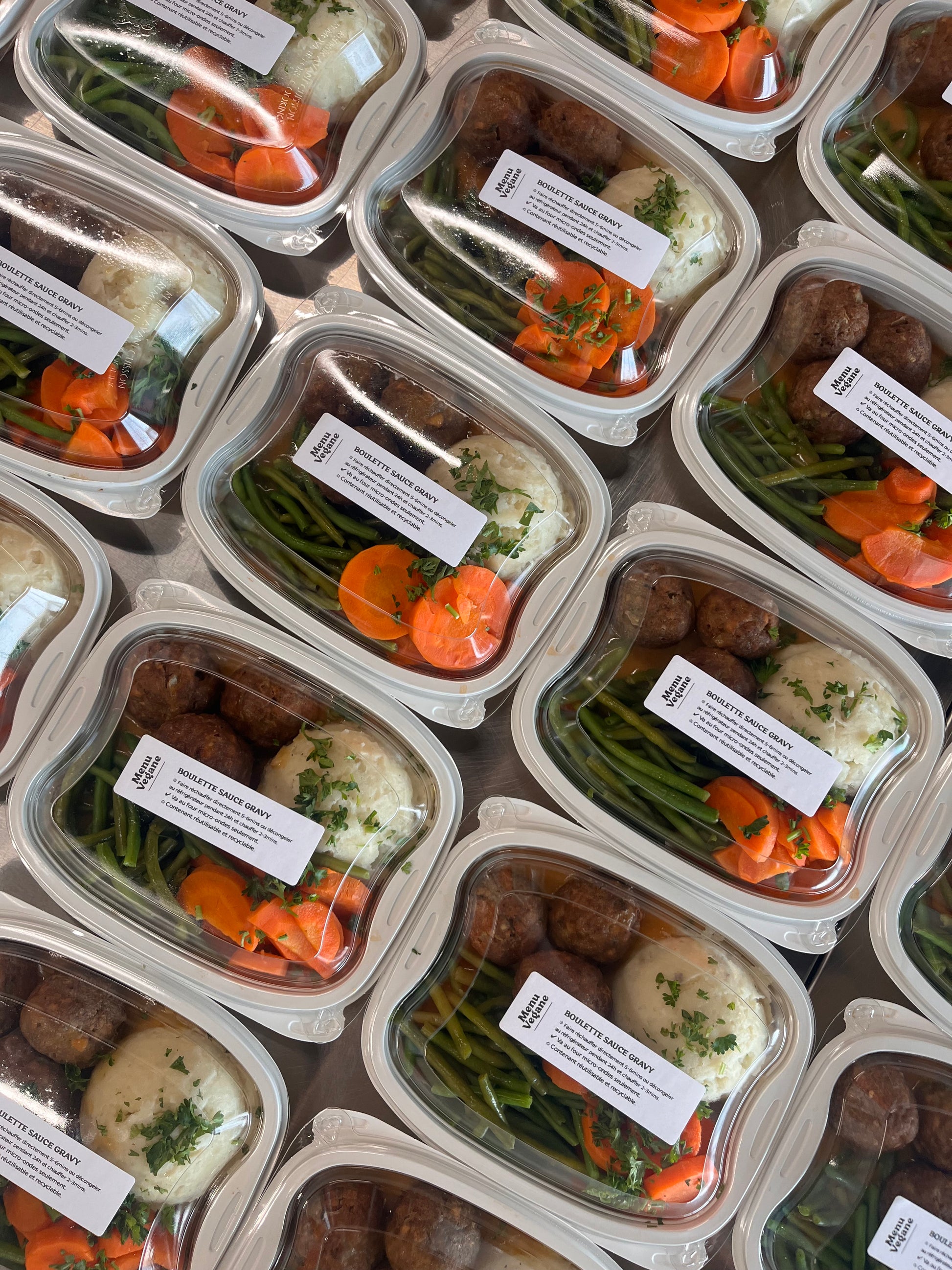 Ingrédients : Haché végétal Impossible(Concentré de Protéines de Soja, Huile de Coco, Huile de Tournesol, Protéines de Pomme de Terre, Méthylcellulose, Glutamates, Extrait de Levure, Arômes Naturels, Sucres (Dextrose de Culture), Amidon Végétal Modifié, Léghémoglobine de Soja, Sel, Tocophérols Mixtes (Antioxydant), Isolat de Protéine de Soja, Chlorhydrate de Thiamine (Arôme), L-Tryptophane, Gluconate de Zinc, Niacine (Vitamine B3), Phosphate Ferrique, Chlorhydrate de Pyridoxine (Vitamine B6), Pantothénate de Calcium (Vitamine B5), Riboflavine (Vitamine B2) et Vitamine B12. ), patates, oignons, chapelure, épices, beurre végétal, lait de soja, fèves vertes, carotte, farine de blé, bouillon de légumineuse, levure nutritionnelle, Tamari, sel et poivre.